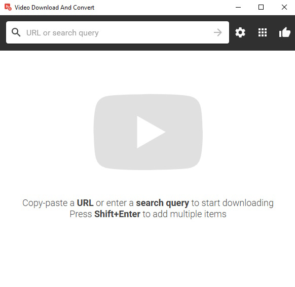 Com o Video Download And Convert já instalado no Windows e aberto vemos que é uma interface bastante simples e leve.