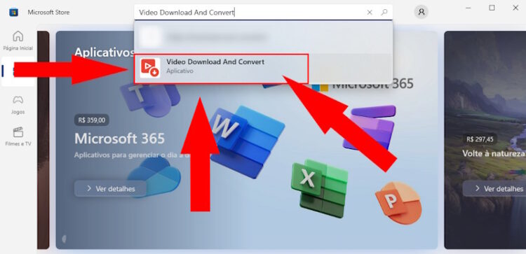 Em seguida, já com a Store aberta, digite na barra de busca o nome Video Download And Convert e clique no app.
