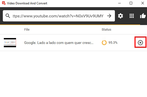 Se quiser cancelar o download, basta clicar no ícone X