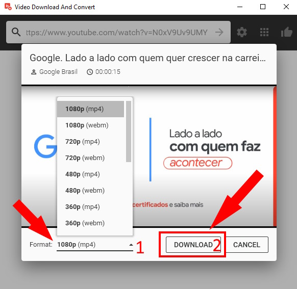 1 – A qualidade do vídeo que vc quer fazer o download. Mas atenção, nesta parte, pôs a qualidade do vídeo que é exibida nesta parte é a mesma que aparece no YouTube. Se um vídeo é upado em 480p, não tem como fazer download em 1080P (full HD).