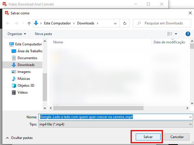 Em seguida vai pergunta onde quer salvar o arquivo. Se tiver tudo certo clique em Salvar.